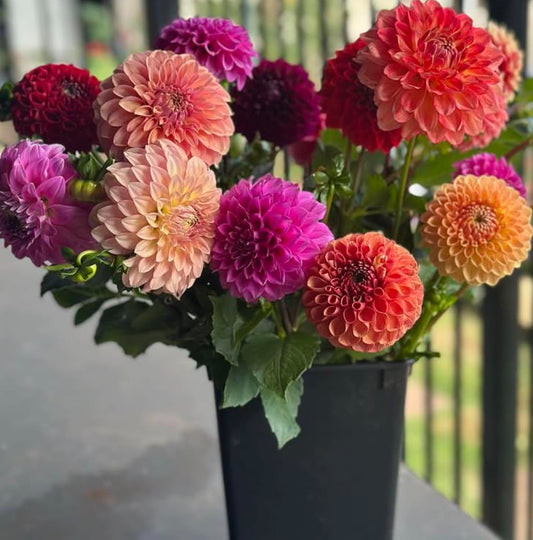 Custom Colour Dahlia Bucket 20 stems-warm colours.